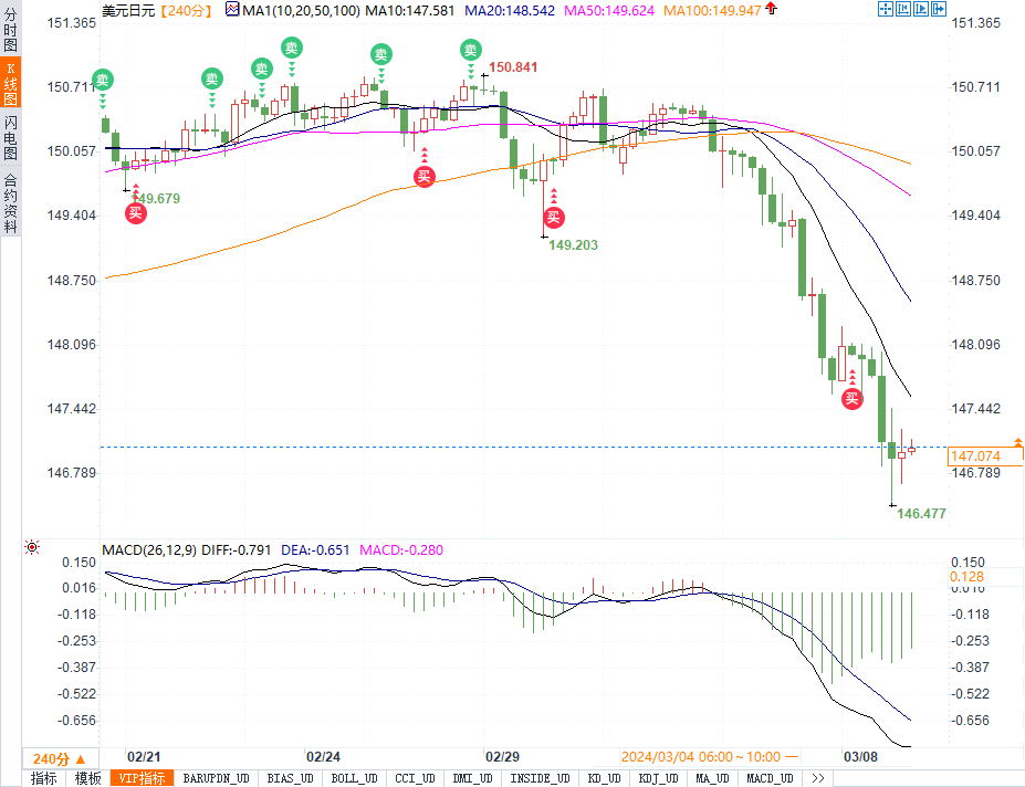 (美元/日元4小时走势图 来源:易汇通)