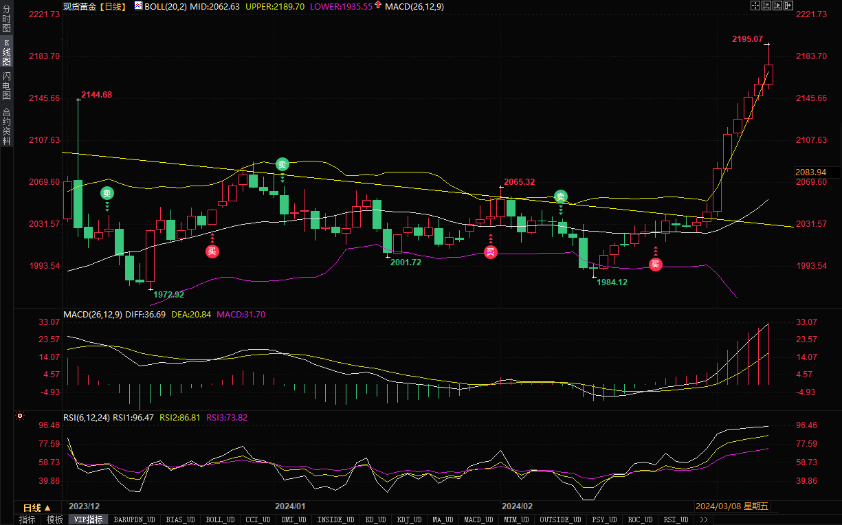汇通财经APP讯——现货黄金上周五(3月8日)再次刷新历史高点至2195.07美元/盎司,因美国失业率上升的数据提振了对美联储可能很快开始降息的预期。上周五