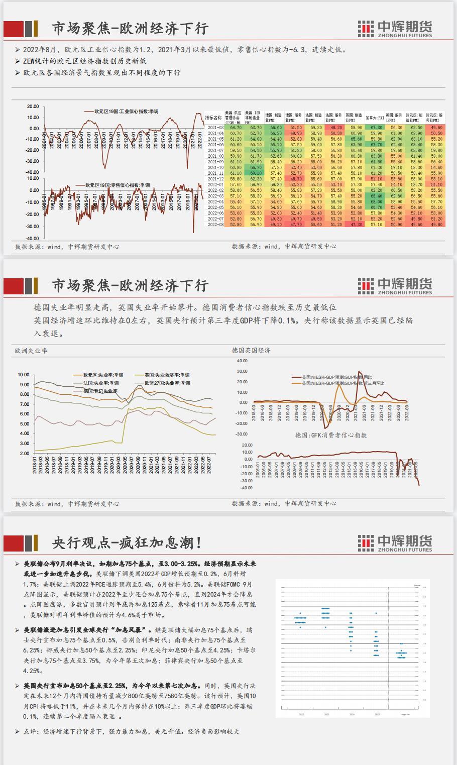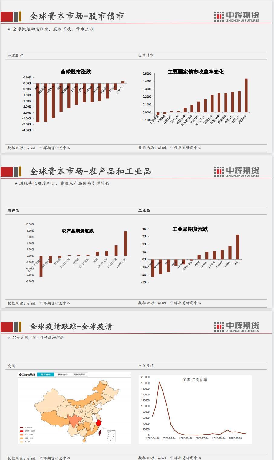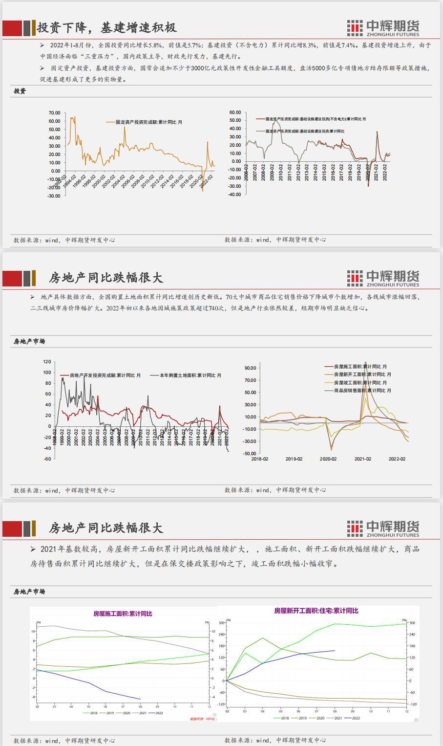 结论:短期国内经济数据边际利好,但是地产数据较差,政策维稳为主。二十大召开之前相关的环保政策、安检措施将会严格,对相关产业有影响。美联储议息会议决议加息75个基点符合预期,但是点阵图显示对未来激进加息的预期并没有转向宽松,多国跟随激进加息,11月会议之前,加息预期继续困扰市场。