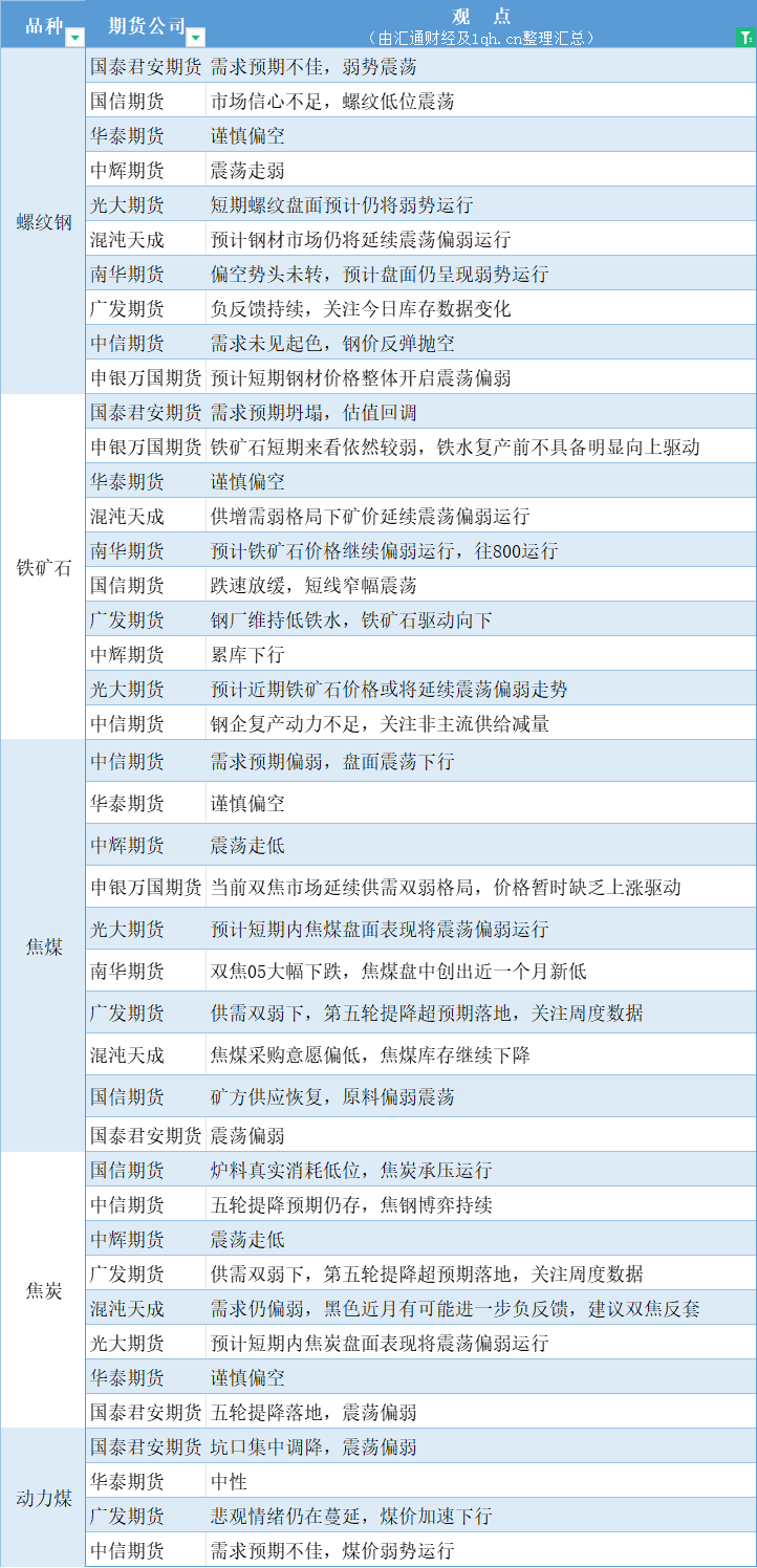 标题:期货公司观点汇总一张图:3月14日黑色系(螺纹钢、焦煤、焦炭、铁矿石、动力煤等)