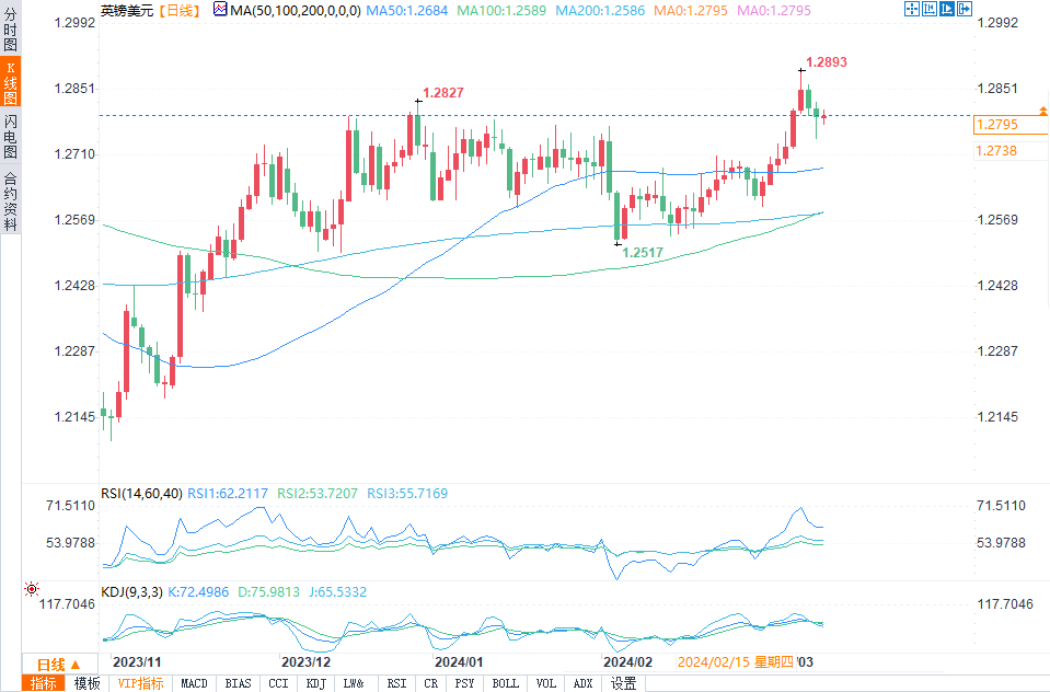 50天和200天指数移动平均线分别位于1.27605 和1.26886,暗示枢轴下方存在看跌情绪。上破枢轴点1.27989可能标志着转向更加看涨的趋势。