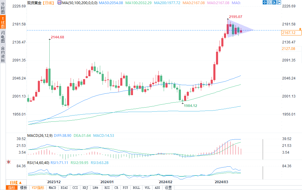 美元指数上涨的影响而下跌,如果联邦储备在下周会议上继续释放2024年三次降息的信号,可能会引发另一轮黄金购买浪潮。