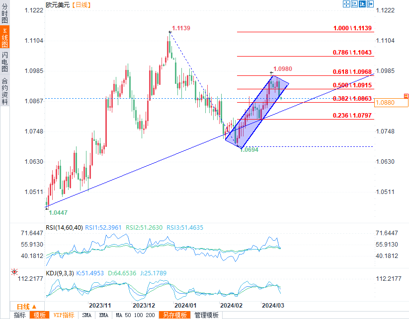 欧元/美元目前交投于1.08774附近,1.0874的支撑点被认为是未来价格走势的关键水平。阻力位在1.0904、1.0930和1.0964,可能会限制上行势头,支撑位在1.0844、1.0821和1.0800,有望对任何回调起到支撑作用。