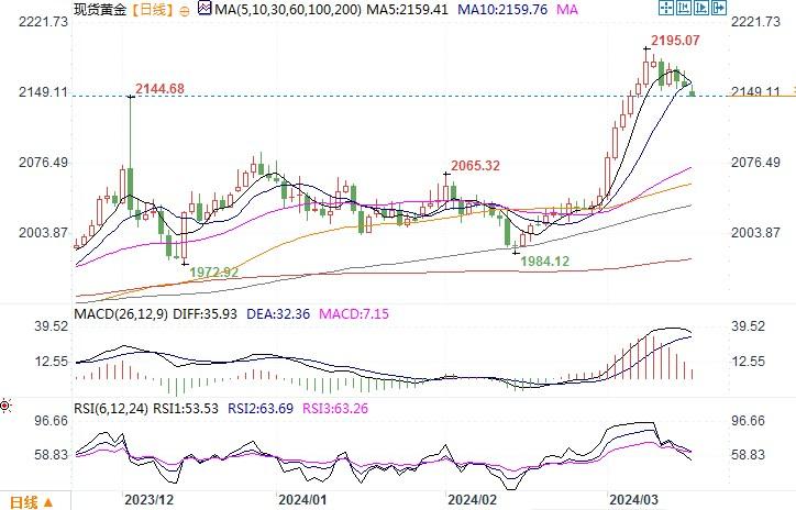 汇通财经APP讯——周五(3月15日),金价持稳,现货金收盘报每盎司2,159.99美元,变化不大。当周金价下跌了0.8%,这是自2月中旬以来的首个周线下跌,上周曾创下2,194.99美元的历史新高。