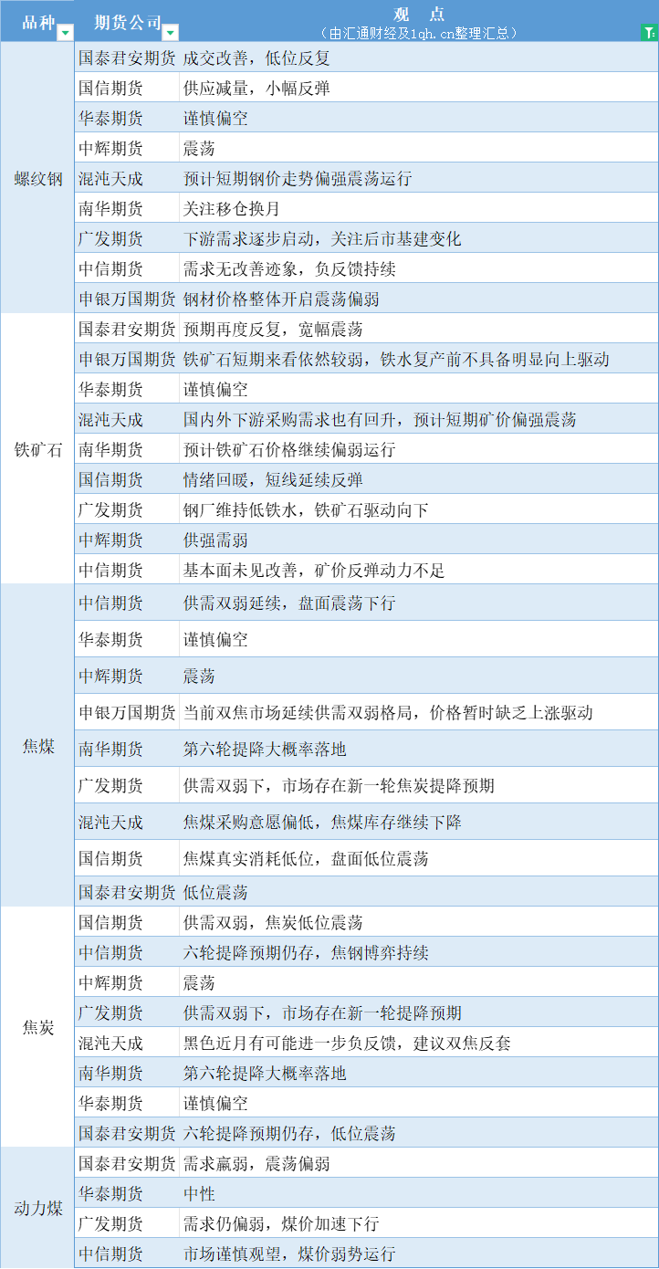标题:期货公司观点汇总一张图:3月19日黑色系(螺纹钢、焦煤、焦炭、铁矿石、动力煤等)
