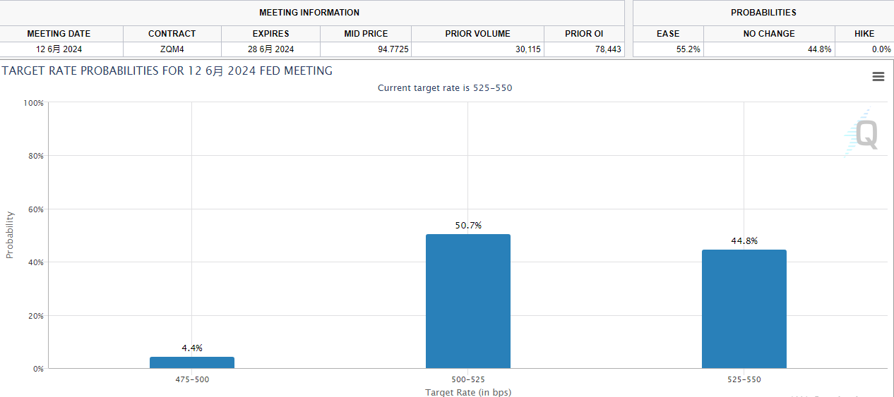 市场还普遍预计,在周三结束的美联储为期两天的政策会议上,利率将保持不变,但6月份降息的可能性为55.2%.。