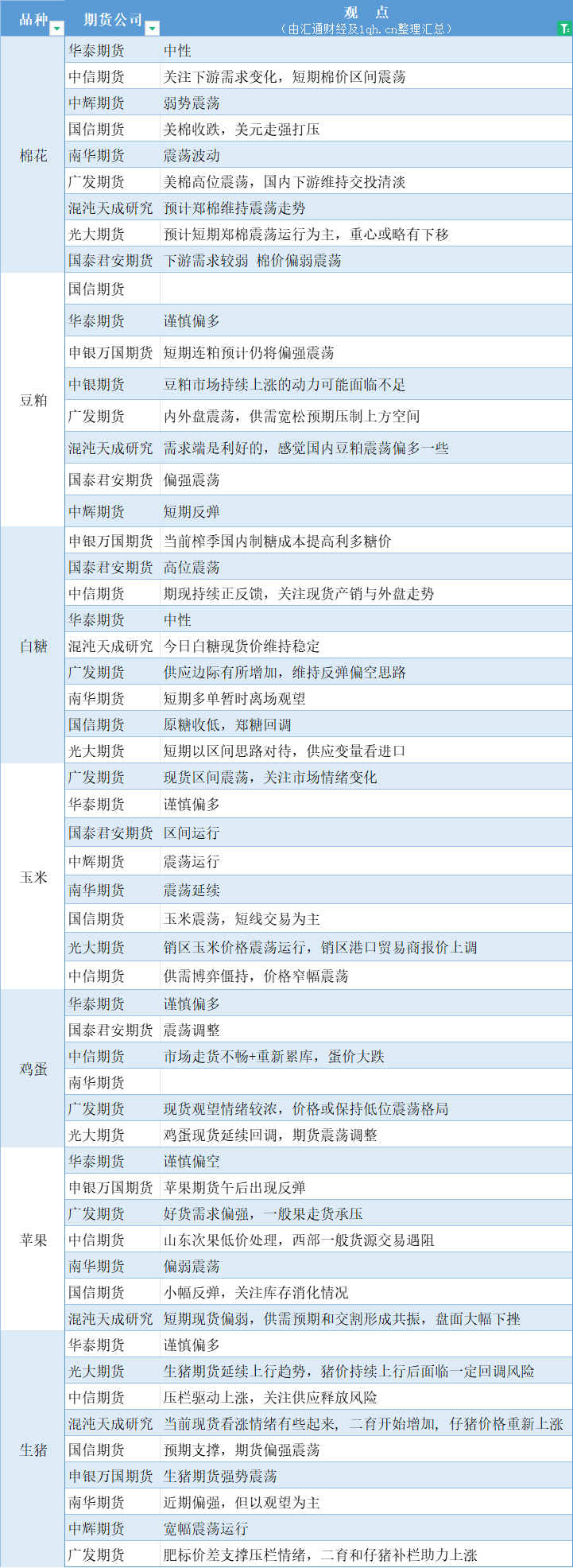 期货公司观点汇总一张图:3月20日农产品(棉花、豆粕、白糖、玉米、鸡蛋、生猪等)