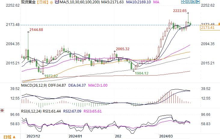 现货黄金 报 2173.41 美元/盎司