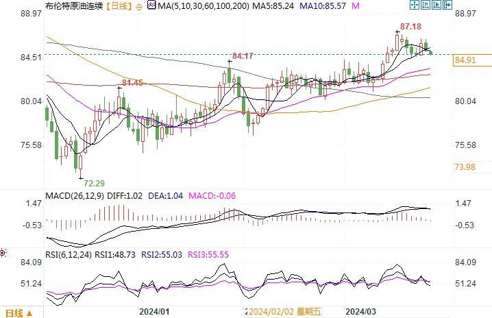布伦特原油连续 报 84.95 美元/桶