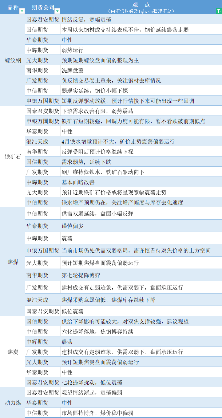 期货公司观点汇总一张图:3月27日黑色系(螺纹钢、焦煤、焦炭、铁矿石、动力煤等)