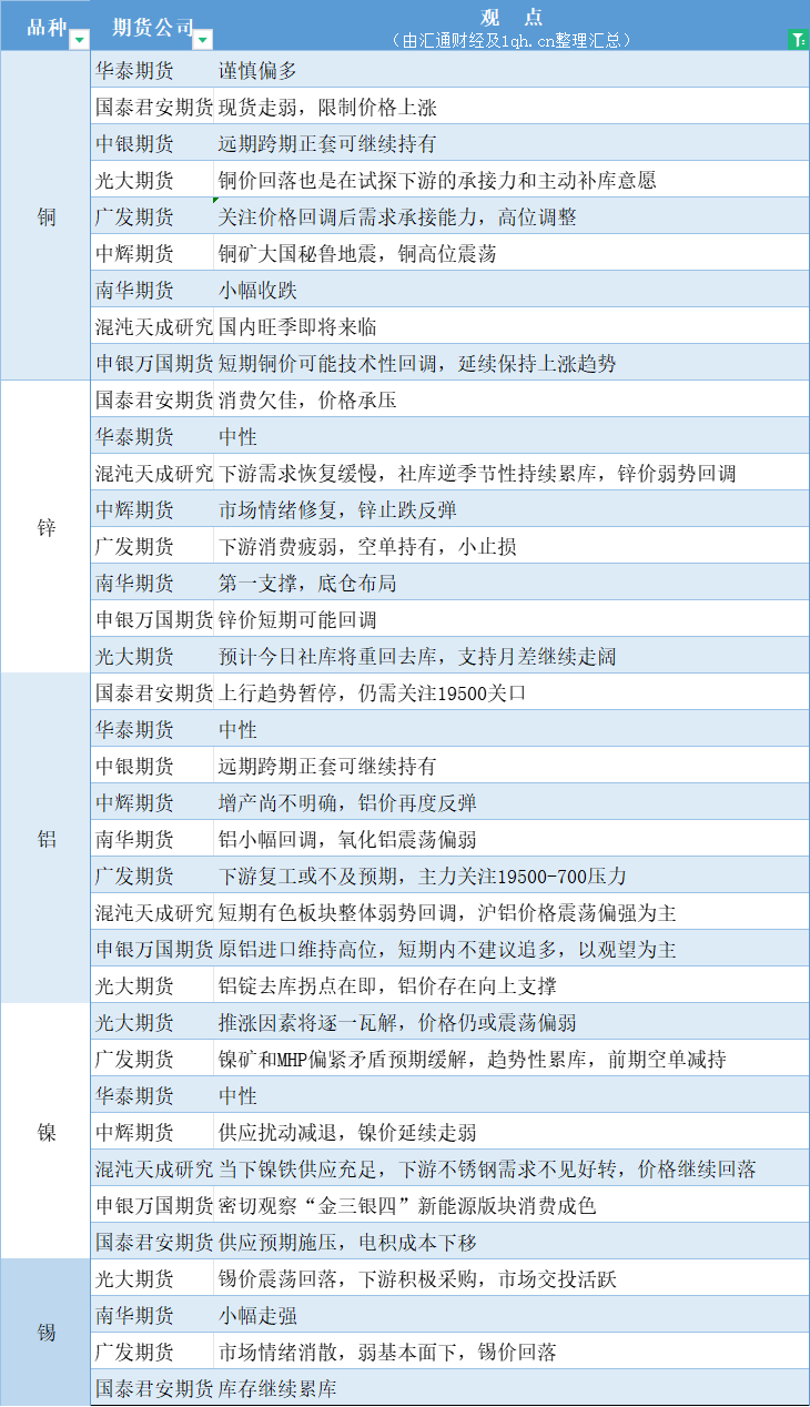 期货公司观点汇总一张图:3月28日有色系(铜、锌、铝、镍、锡等)