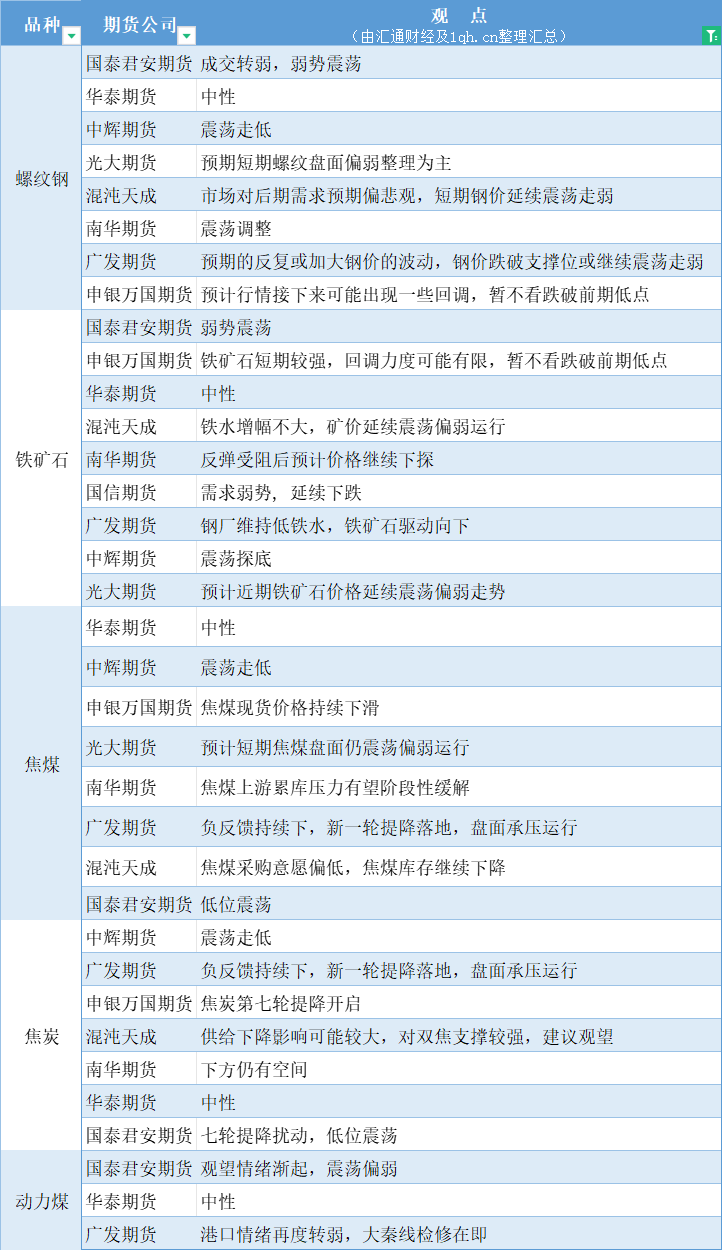 期货公司观点汇总一张图:3月28日黑色系(螺纹钢、焦煤、焦炭、铁矿石、动力煤等)