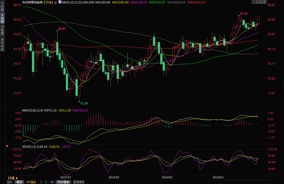 布伦特原油主力还有日线图,来源:易汇通)