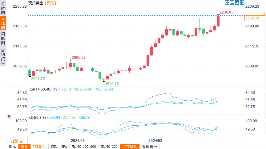 周四,黄金收于2232.78美元/盎司,涨幅1.74%,盘中最高触及2236.05美元/盎司,创下历史新高。本周