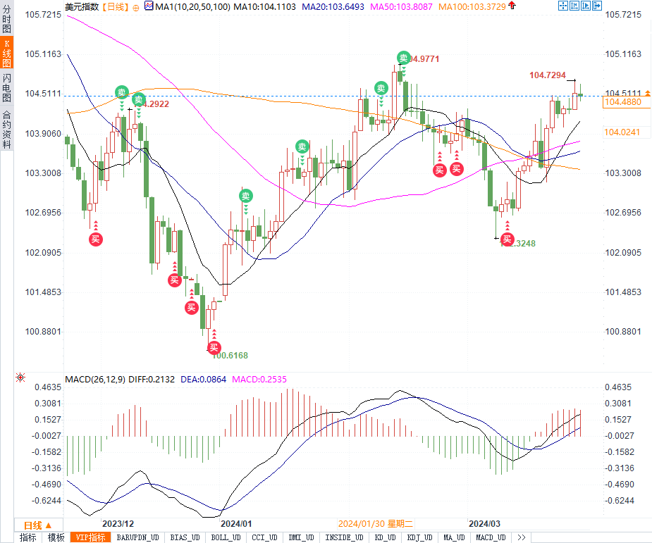 美元指数微幅下跌至104.53,跌幅为0.01%。这表明市场对美国通胀数据的解读对美元汇率产生了一定的影响。