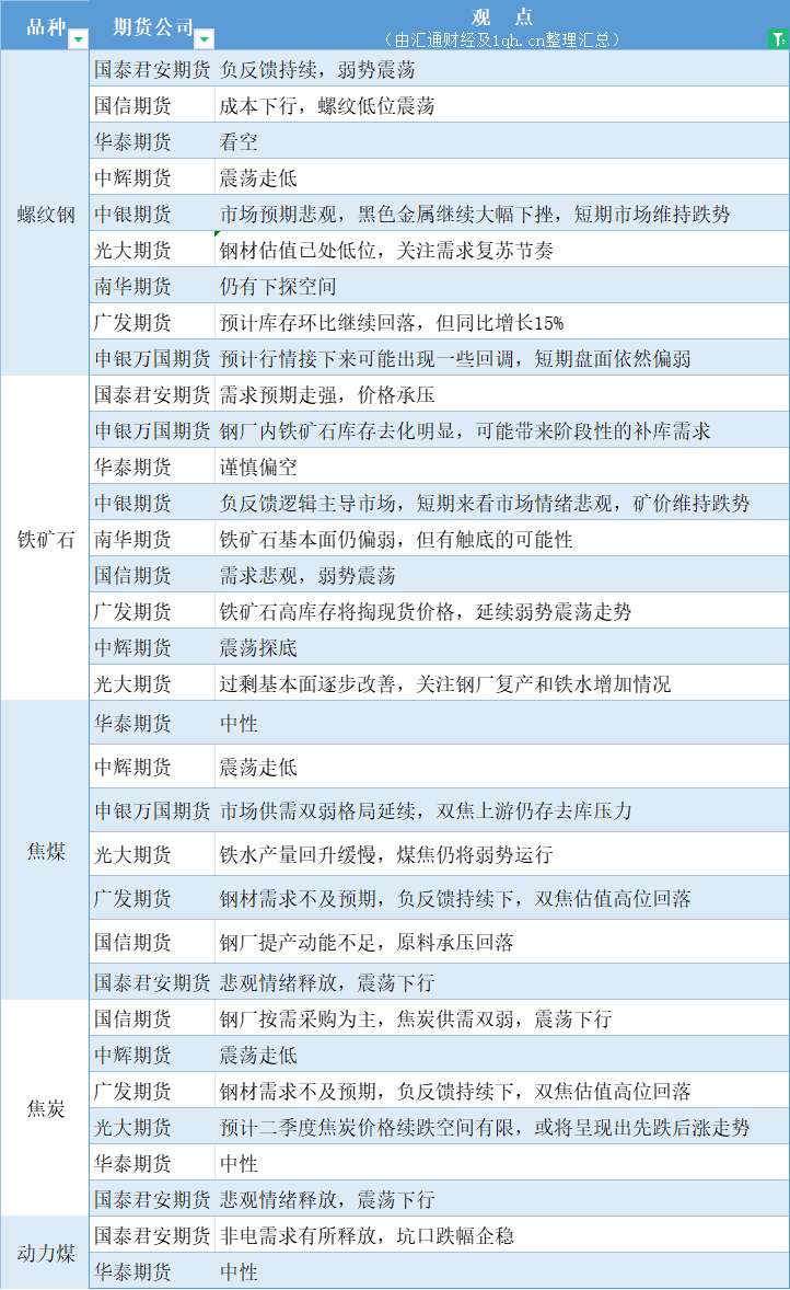 标题:期货公司观点汇总一张图:4月1日黑色系(螺纹钢、焦煤、焦炭、铁矿石、动力煤等)