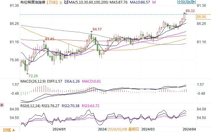 布油价格突破每桶88.50美元,美国基准WTI原油价格周二早盘触及每桶85美元。此前,周一发生炸弹袭击,将伊朗驻叙利亚大马士革领事馆夷为平地,德黑兰指责以色列是此次袭击的幕后黑手。