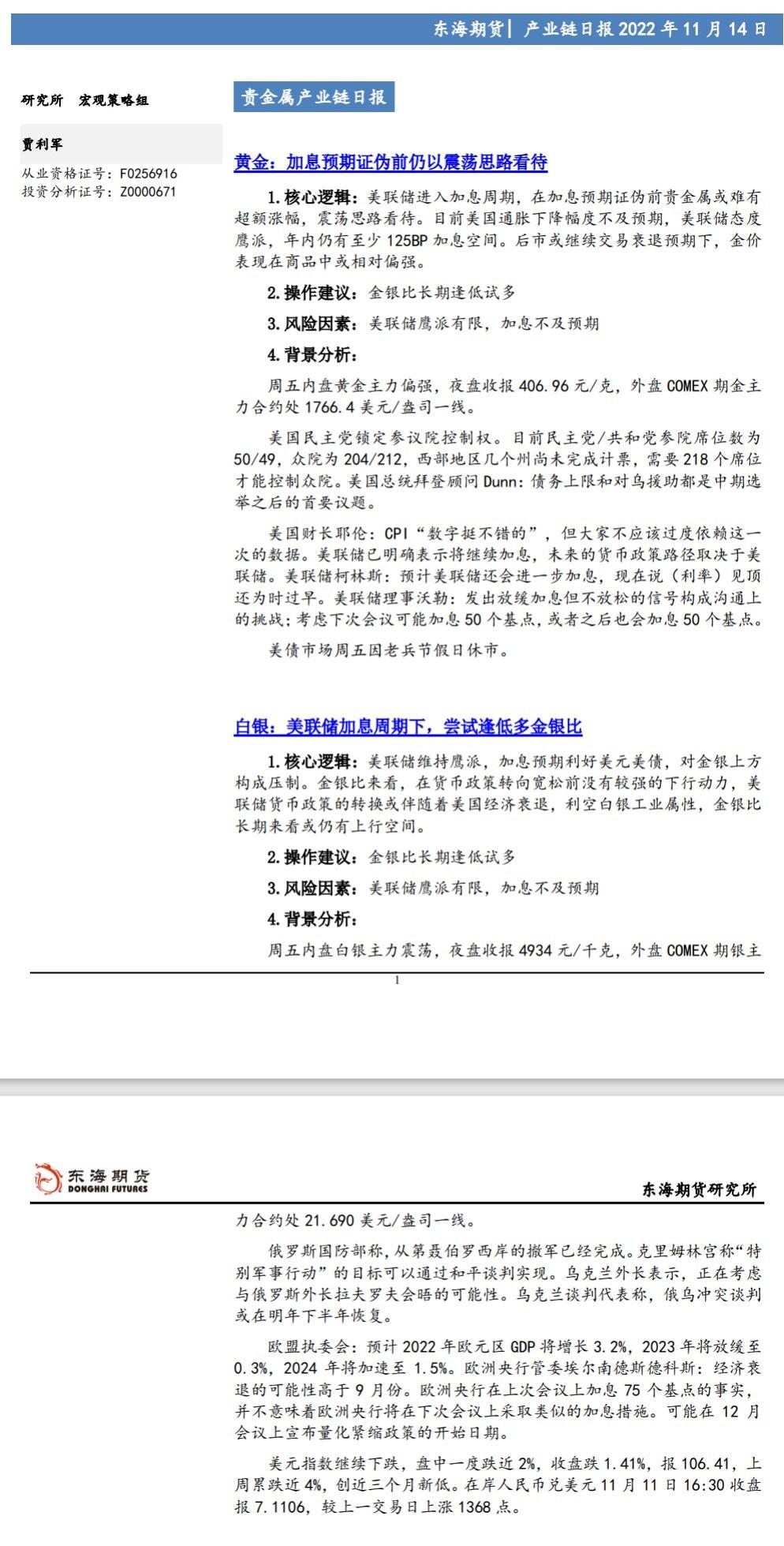 标题:【东海期货11月14日产业链日报】贵金属篇:美元指数延续下行,金价偏强运行