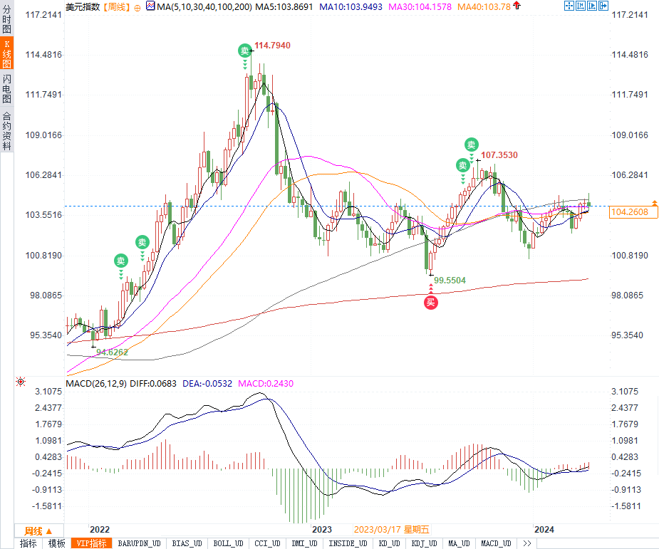 美元指数最新上涨0.04%,达到104.2591。