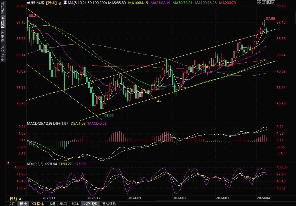 美原油目前下跌2.05%,交投于84.89美元/桶。受地缘局势担忧影响,供应中断担忧推动油价上周上涨超过4%,布油上周五一度创逾五个月新高至91.91美元/桶,