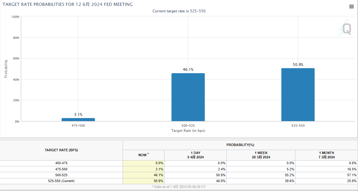 经济数据的变化以及美联储决策者的指引促使投资者下调了降息预期。联邦基金利率期货市场的数据显示,交易商预计联邦公开市场委员会(FOMC)在5月会议上降息的可能性几乎为零,但对6月降息可能性已经从两周前的70%下降至49.1%,7月份降息概率也仅70%。