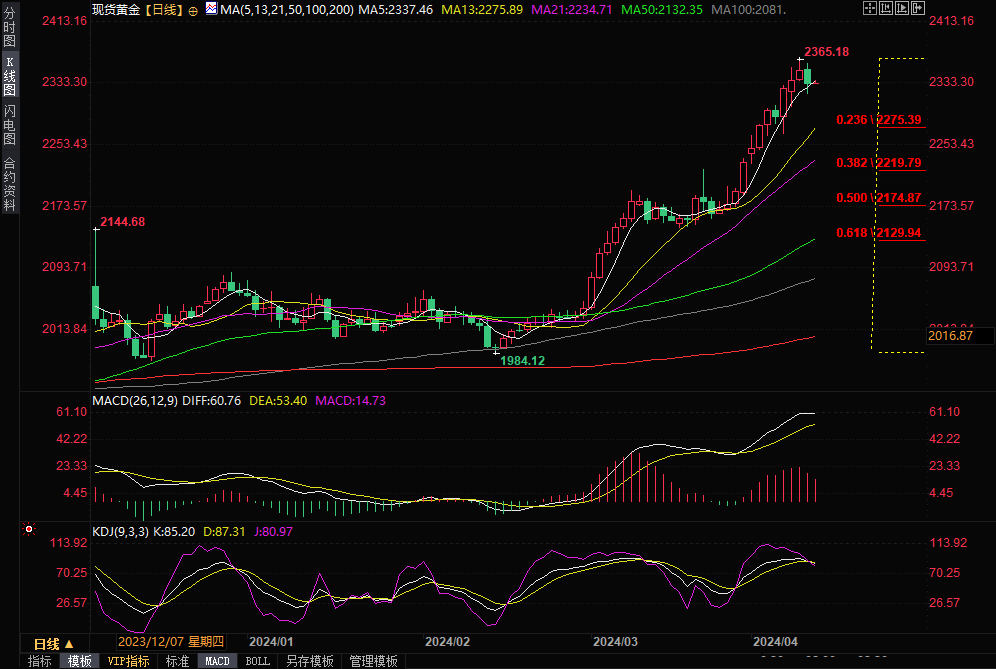 目前来看,在中东局势进一步恶化前,金价存在近一半回调风险,分别关注2320和2300附近支撑,但考虑到地缘局势的担忧情绪仍存,金价料将受到逢低买盘的支撑,这将限制金价的短线下跌空间,盘中警惕多空来回拉锯的可能性。