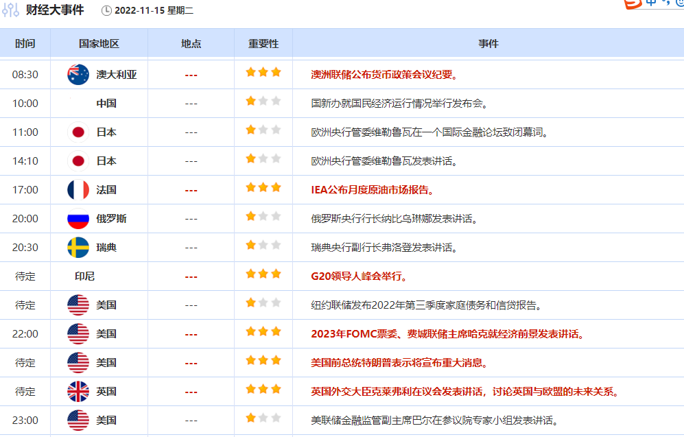 周二(11月15日)亚洲时段,