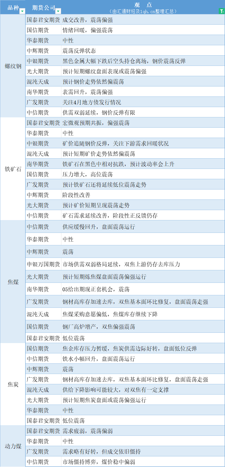 期货公司观点汇总一张图:4月12日黑色系(螺纹钢、焦煤、焦炭、铁矿石、动力煤等)