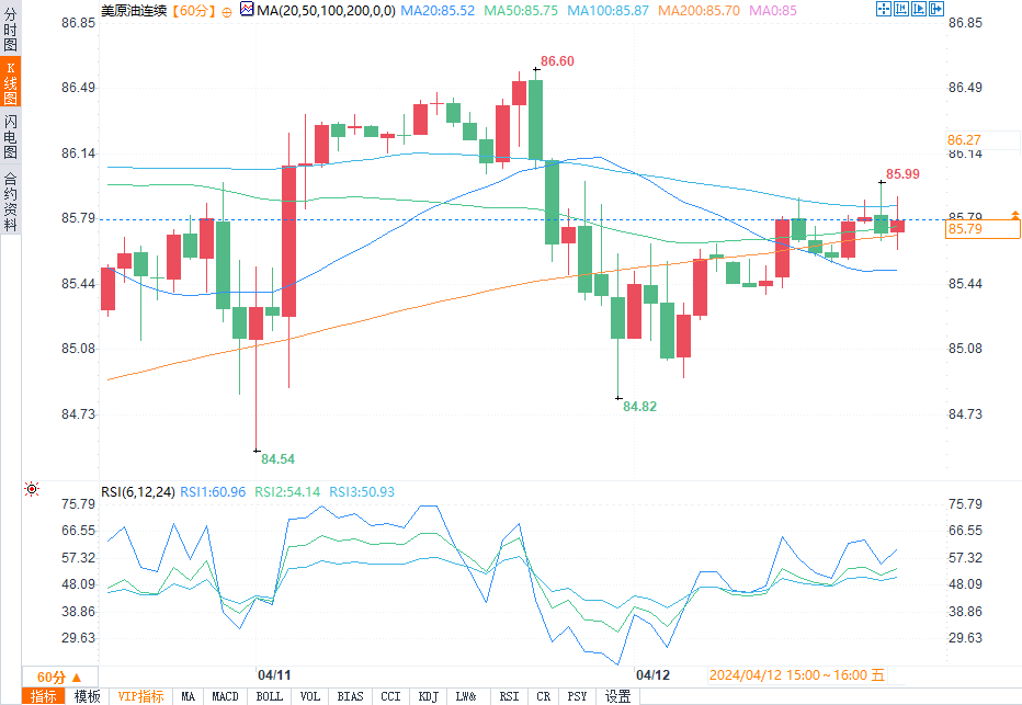 现货黄金报2396.84美元/盎司,涨幅1.04%。WTI原油报85.71美元每桶,涨幅0.15%。