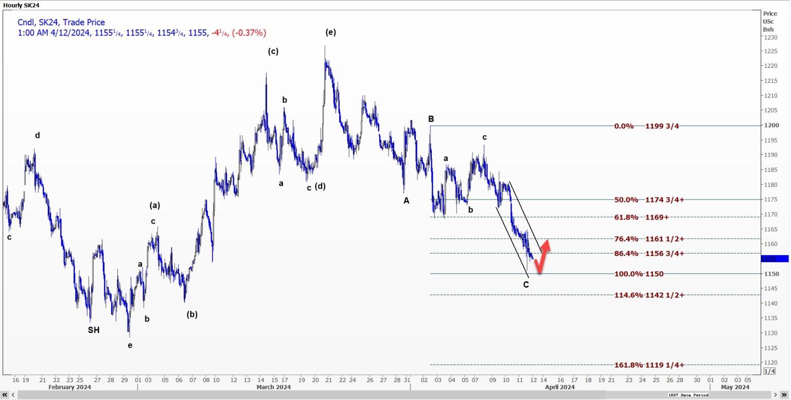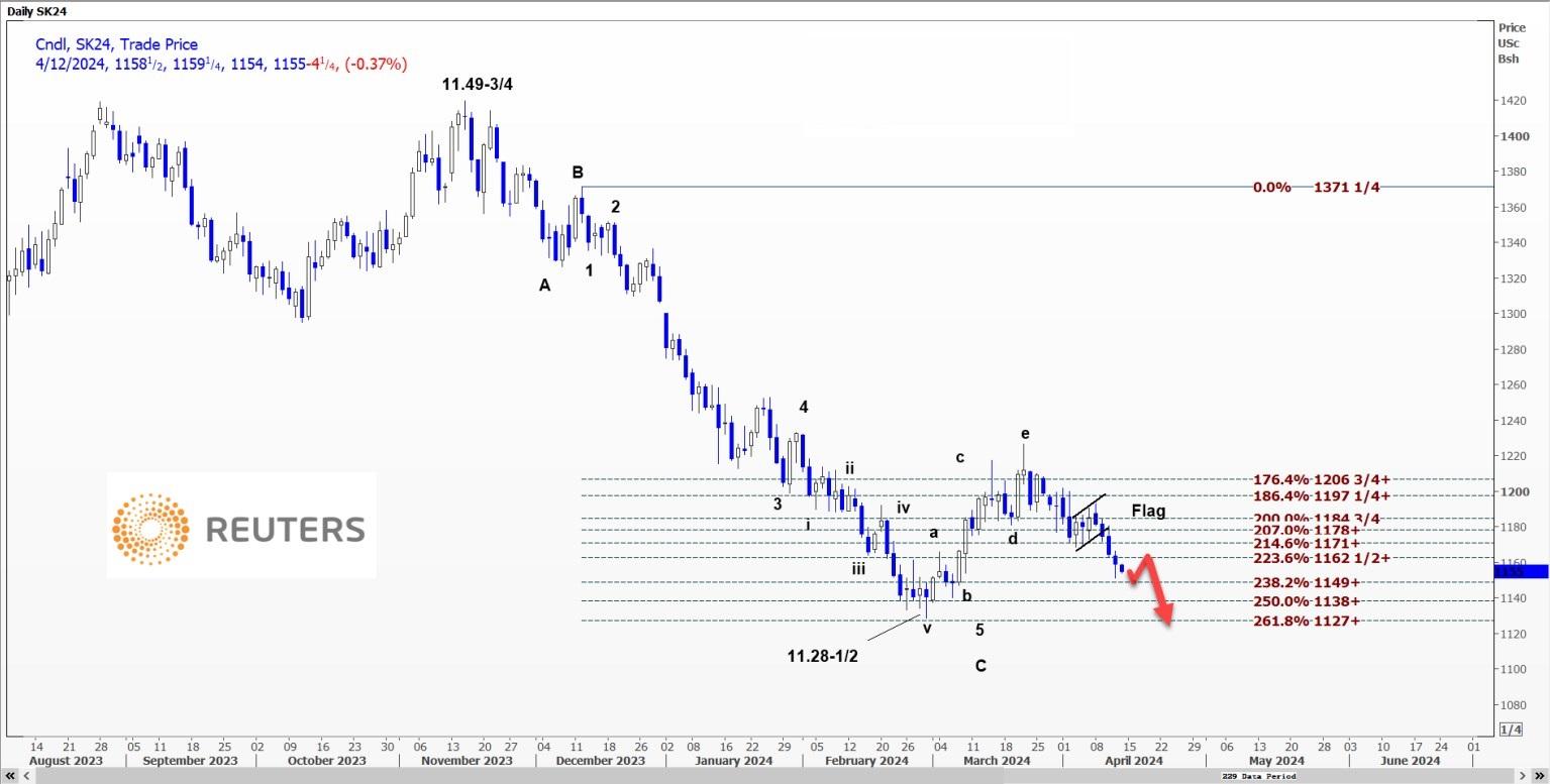 预计芝加哥期货交易所(CBOT)大豆5月合约SK24将稳定在11.50美元的支撑位附近,并反弹至11.6150美元。