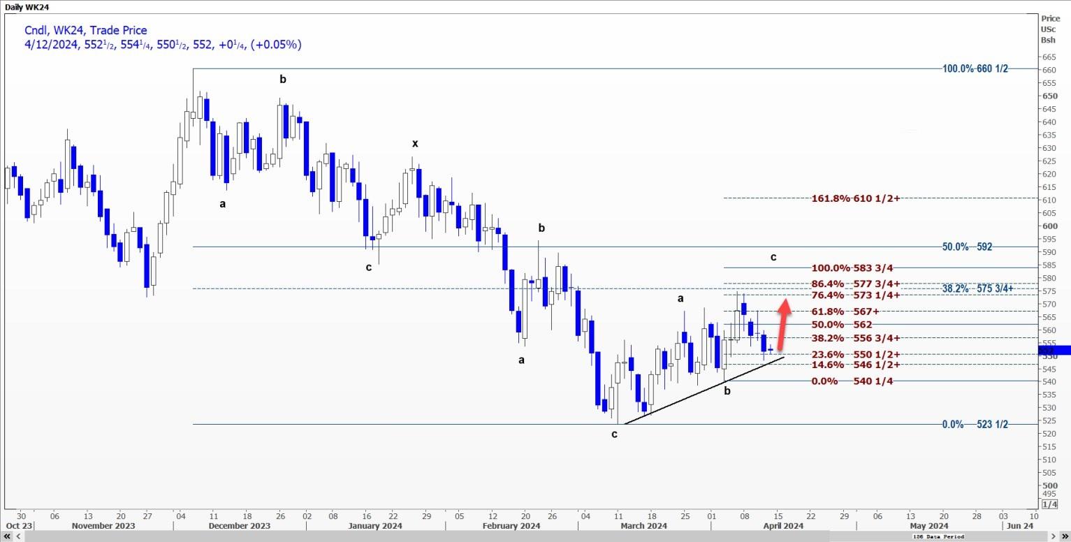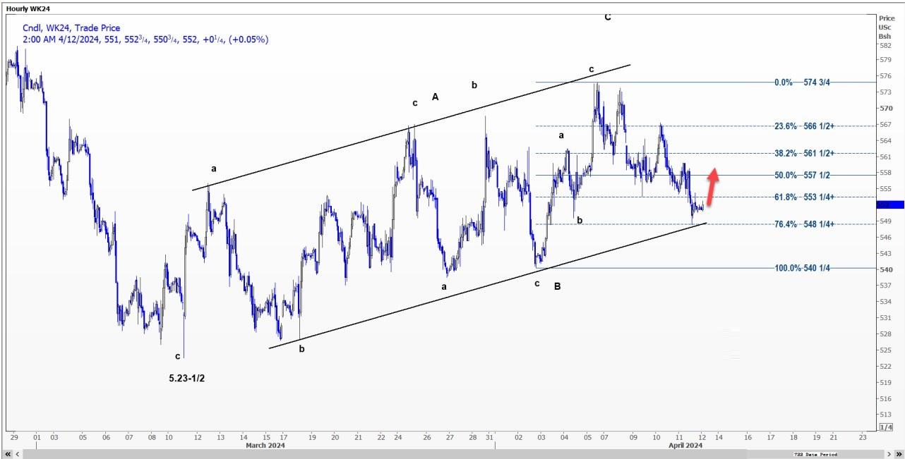 芝加哥期货交易所(CBOT)小麦WK24期价可能反弹至每蒲式耳5.5750-5.6150美元的区间,因其在5.4825美元处找到支撑位。