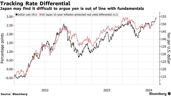 市场对日元汇率持续走软的情况感到担忧,尤其是在美日利率和收益率之间的差异扩大的背景下,日元的弱势可能导致更多的市场干预。