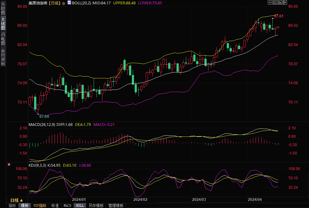 美原油一度跌创近两周新低至84.03美元/桶,但随着以色列声明将对伊朗周末的导弹和无人机袭击作出回应后,油价受到逢低买盘的支撑。