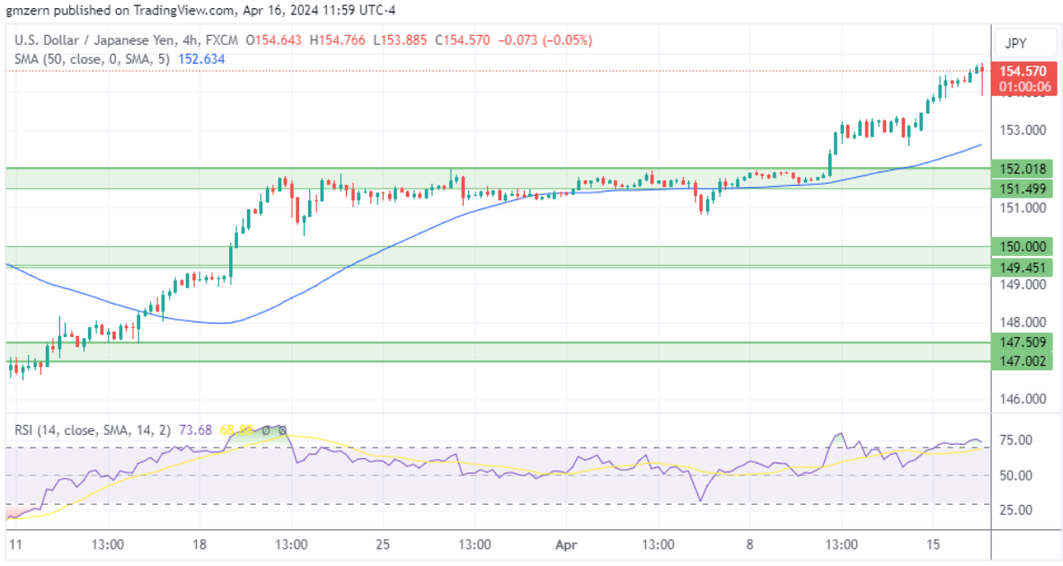从技术角度来看,美元/日元正在向重要心理关口155.00迈进。