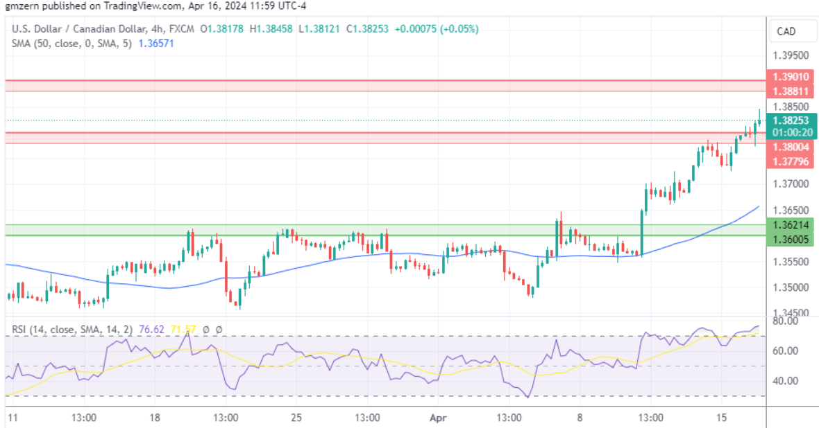 (美元/加元4小时走势图 来源:TradingView)