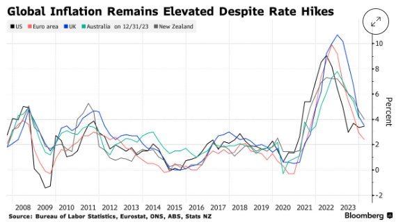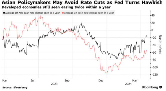对于聚集在华盛顿参加国际货币基金组织和世界银行春季会议的世界各地央行行长来说,鲍威尔最新的政策转向造成了困境。如果欧洲央行、英国央行和澳洲联储等机构启动自己的宽松周期,就有可能导致本国货币贬值,从而抬高进口价格并破坏降低通胀的进展。但不放松政策可能会带来增长风险。