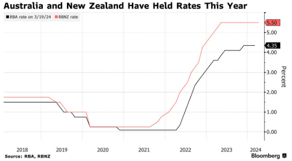 对于邻国澳大利亚,经济学家预计今年年底只会出现一次降息。