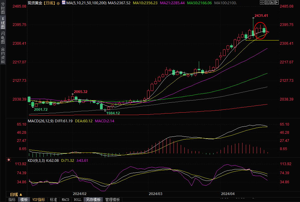 现货黄金窄幅震荡,目前交投于2366.60美元/盎司。金价周三回落0.9%,收报2361.14美元/盎司,美国降息希望减弱造成的压力盖过了中东地缘政治动荡引发的避险需求带来的提振。