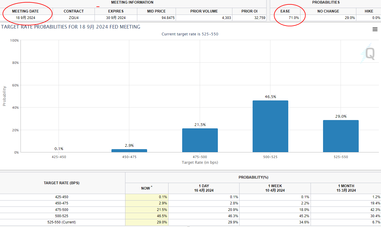 包括美联储主席鲍威尔在内的美联储官员周二回避就何时可能降息提供任何指引,而是表示货币政策需要在更长时间内保持限制性。市场认为美国在9月降息的可能性为71%。