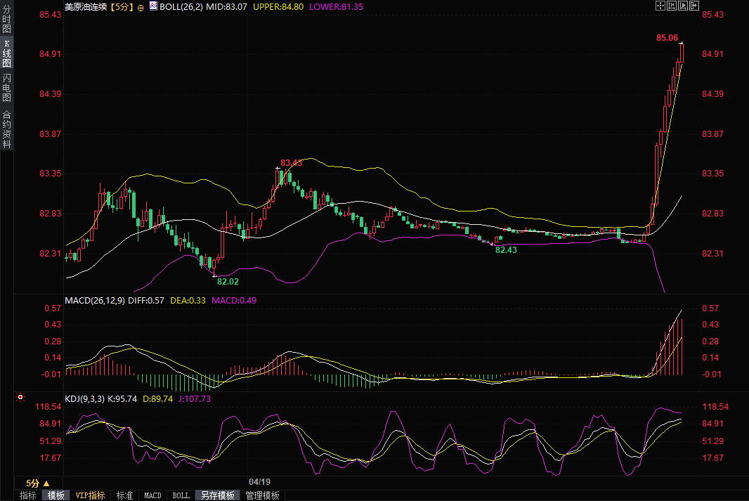 美原油短线拉升逾2美元、触及85.15美元/桶,涨幅约3.22%,因此前有报道称,伊朗、叙利亚、伊拉克传出爆炸声。市场担忧这是以色列发动的袭击,市场对中东地缘局势恶化的担忧情绪升温。
