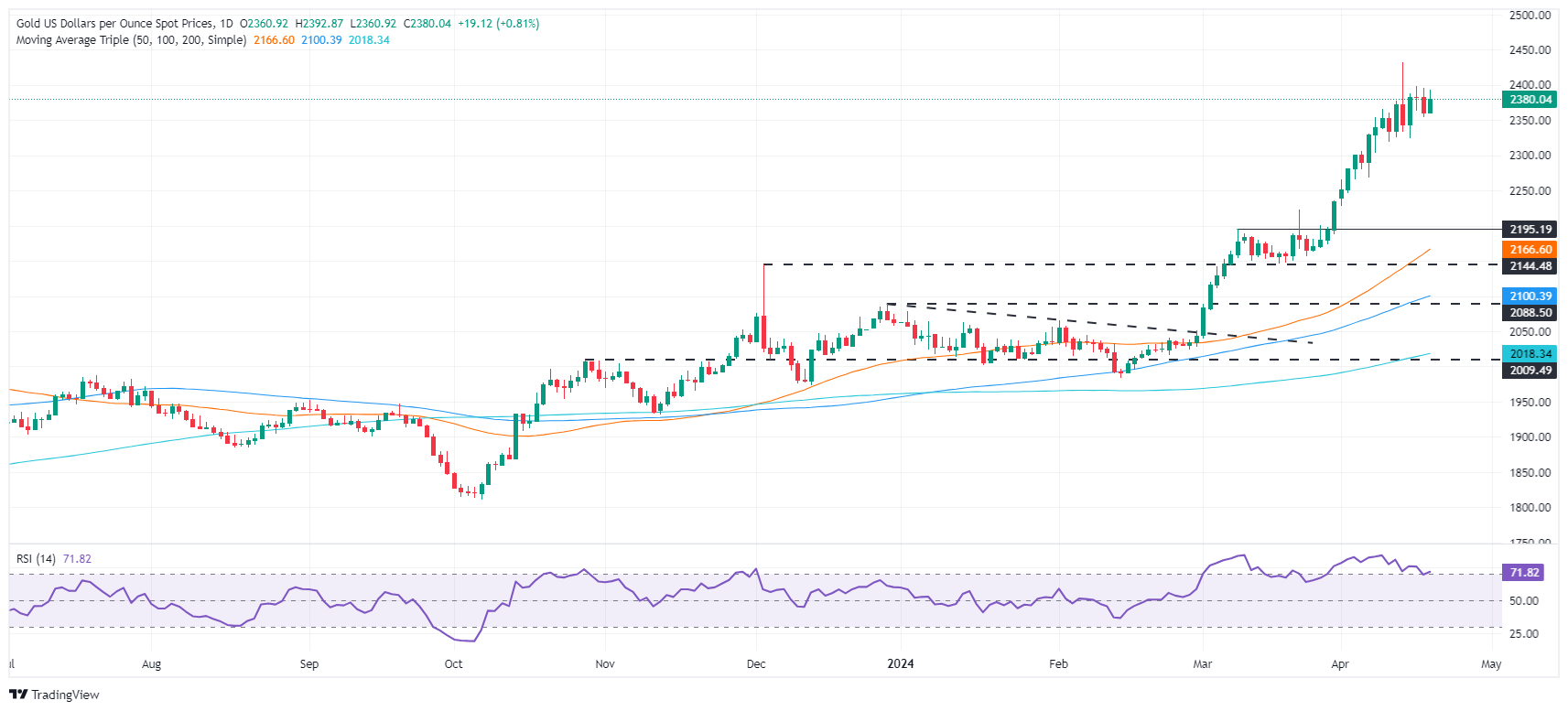 汇通财经APP讯——#中东局势##黄金技术分析# 周四(4月18日),尽管美元走强,但现货黄金仍然大涨近18美元,并一度飙升至2390美元/盎司上方。FXStreet分析师Christian Borjon Valencia周四撰文,对金价走势进行分析和预测。