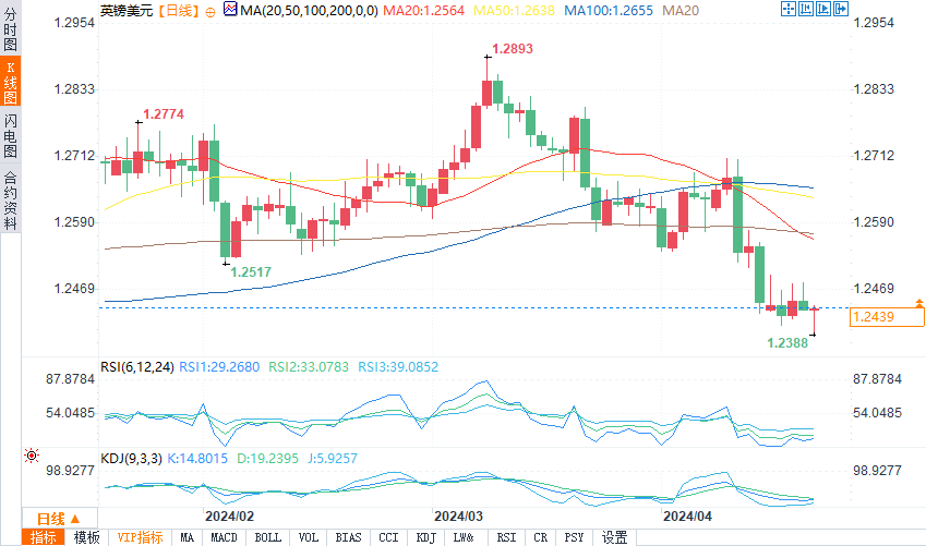 汇通财经APP讯——周五(4月19日)欧盘时段,英镑/美元在全天经历两次波动低谷后回升至开盘价附近。盘中报1.2434,跌幅0.01%。