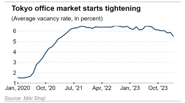 还有分析认为,仓储行业供应过剩。相比之下,办公空间的需求更高,东京3月份的空置率为5.47%,为三年低点。随着人们从买房转向租房,公寓租金也在上涨。东京地区的公寓价格创历史新高。