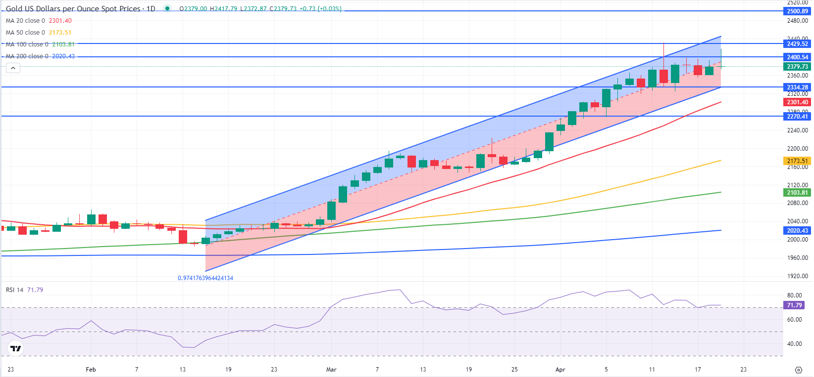 Sengezer指出,黄金日线图显示,相对强弱指数(RSI)上周有所回落,但尚未跌破70,这标志着持续向下修正的开始。