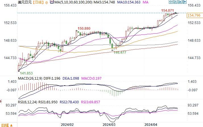 美元兑日元接近154.871的34年新低。日本财务大臣Shunichi Suzuki当天早些时候表示,