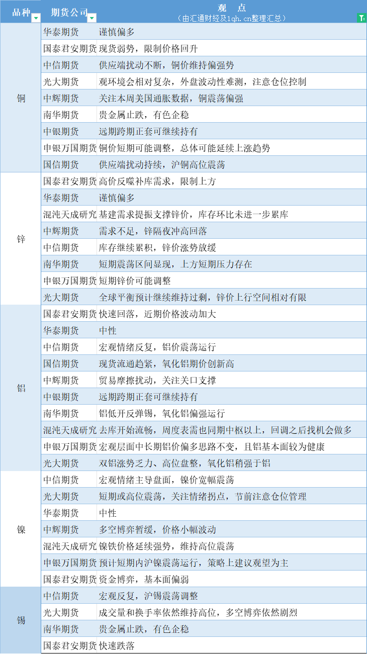 标题:期货公司观点汇总一张图:4月25日有色系(铜、锌、铝、镍、锡等)