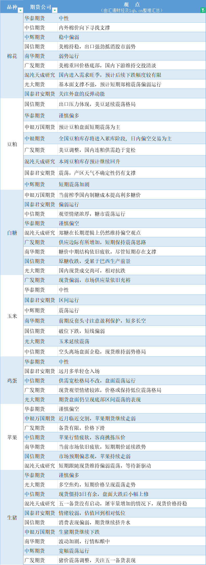 期货公司观点汇总一张图:4月26日农产品(棉花、豆粕、白糖、玉米、鸡蛋、生猪等)