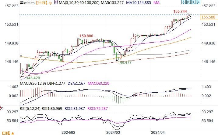 美元兑日元 报 155.603/617。