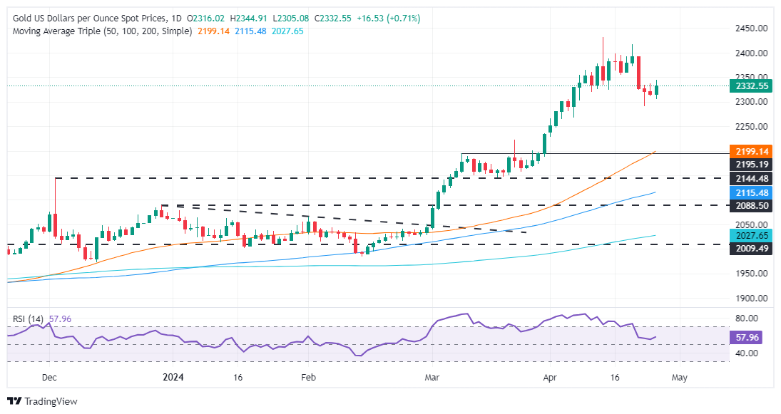汇通财经APP讯——周四(4月25日)现货黄金大涨逾16美元,收盘站上2330美元/盎司。美国GDP数据远不及预期,这令美元遭受打击,从而刺激金价走强。FXStreet分析师Christian Borjon Valencia最新撰文,对金价技术走势进行分析。