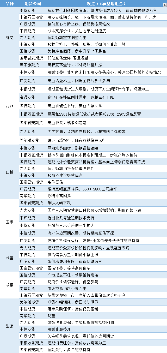 标题:期货公司观点汇总一张图:11月17日农产品(棉花、豆粕、白糖、玉米、鸡蛋、生猪等)
